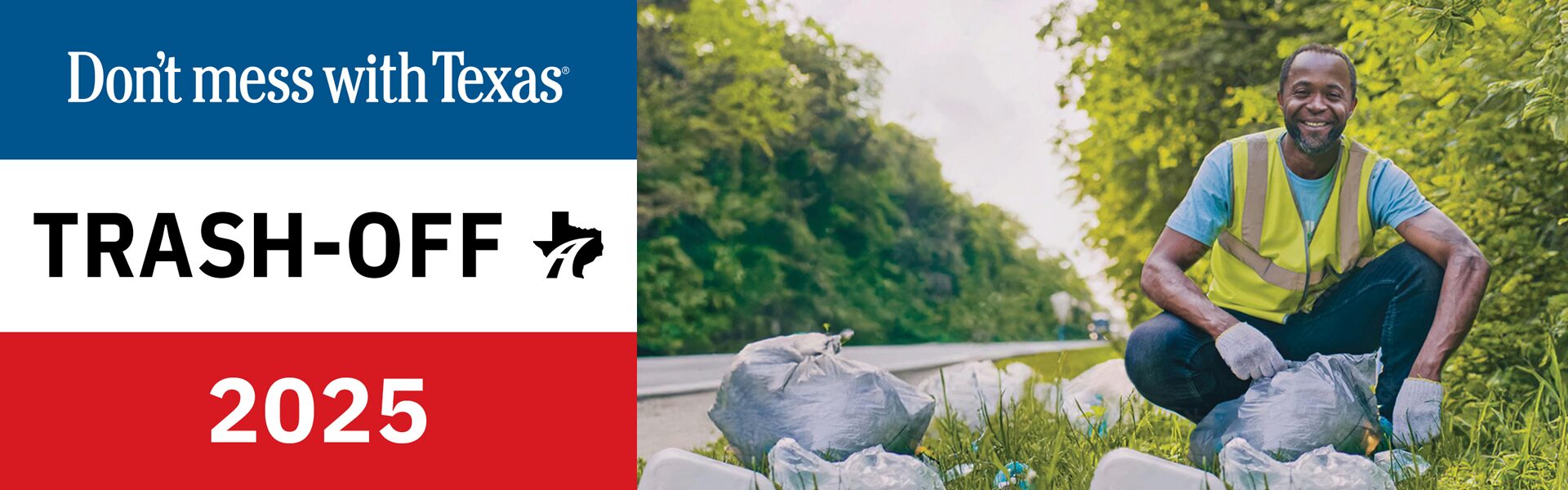 The Don’t mess with Texas® Trash-Off is the state’s signature event for picking up litter. Each April, volunteers from across Texas come together to clean up roadways, beautify communities, and show what it means to take pride in our state.